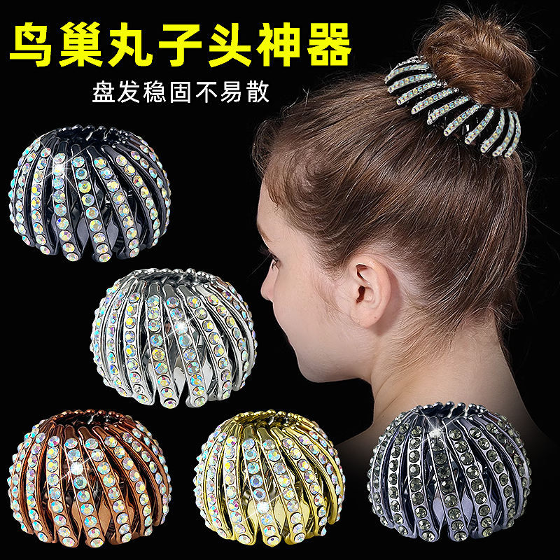 伸縮可能なヘアリング鳥の巣盤器丸子頭後頭部高馬尾クリップ丸子頭盤髪クリップ頭飾り