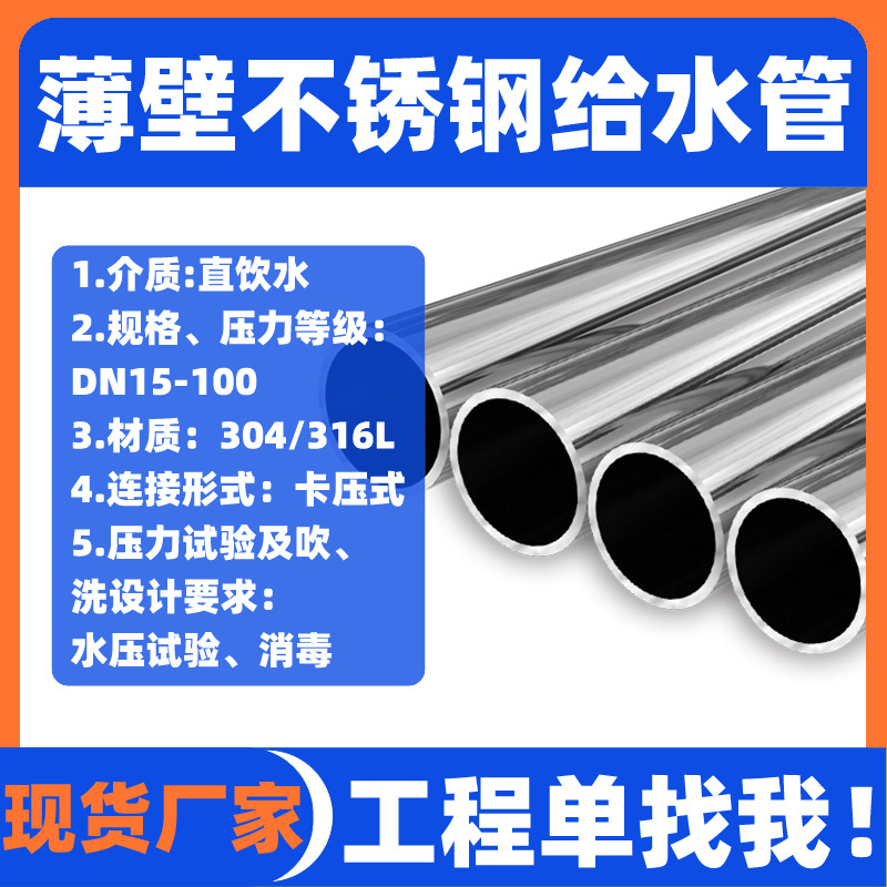 101.6*2.0 薄壁ステンレス鋼水道管衛生圧着給水パイプステンレス鋼衛生水道管メーカー