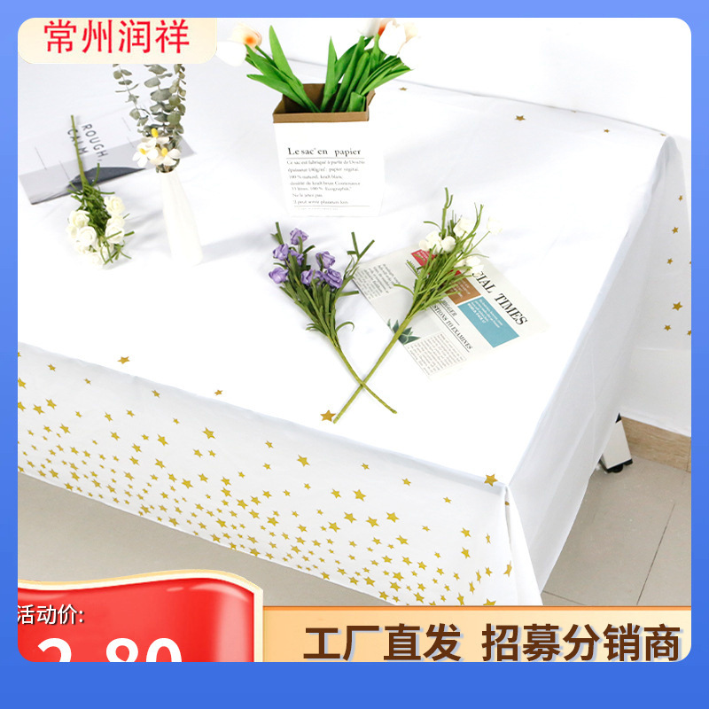 ✅アマゾン使い捨てPEVAテーブルクロス厚手防水油金星波点誕生日結婚式パーティーテーブルクロス卸売り
