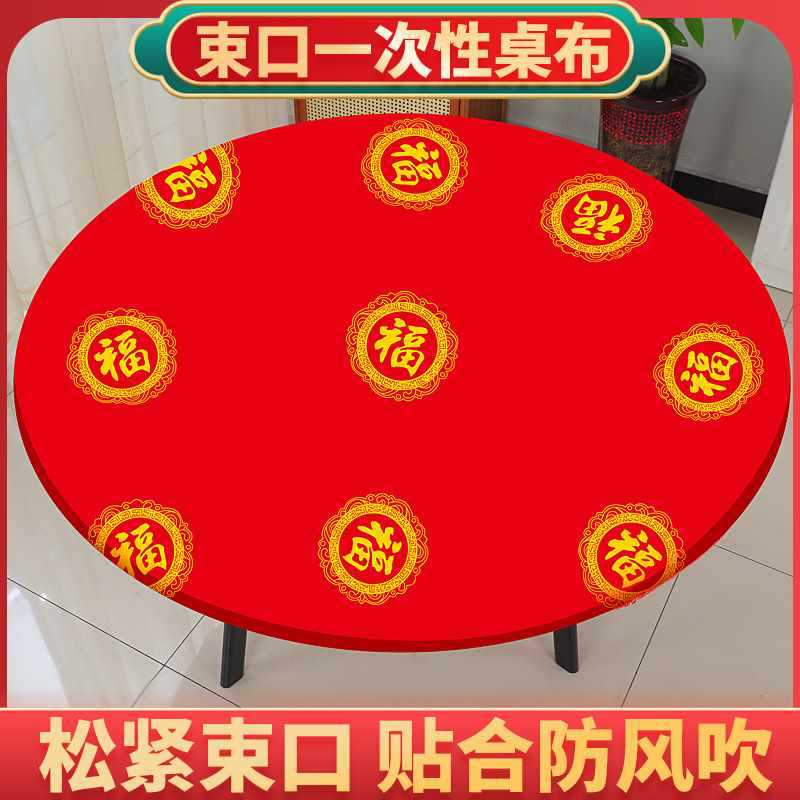 ✅ 使い捨てテーブルクロス弾性巾着結婚式プリント赤ラウンドテーブル宴会厚みのあるテーブルクロスハッピーワード結婚式宴会テーブル