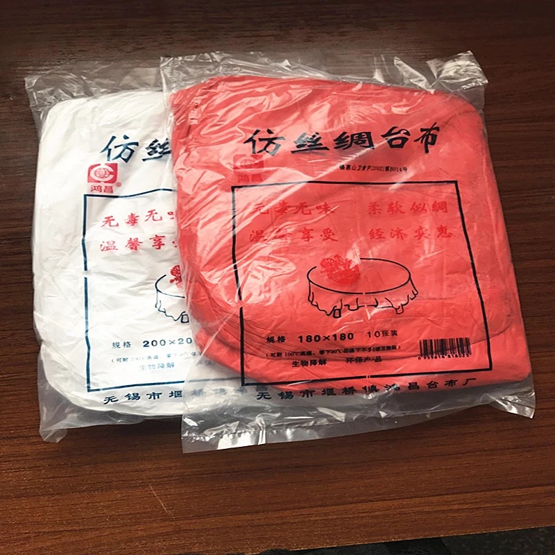 使い捨てのテーブルクロスの卸売りは厚い円卓の四角いテーブルのホテルの酒席の結婚祝いのテーブルクロスの価格のメーカーの卸売りは代行します。