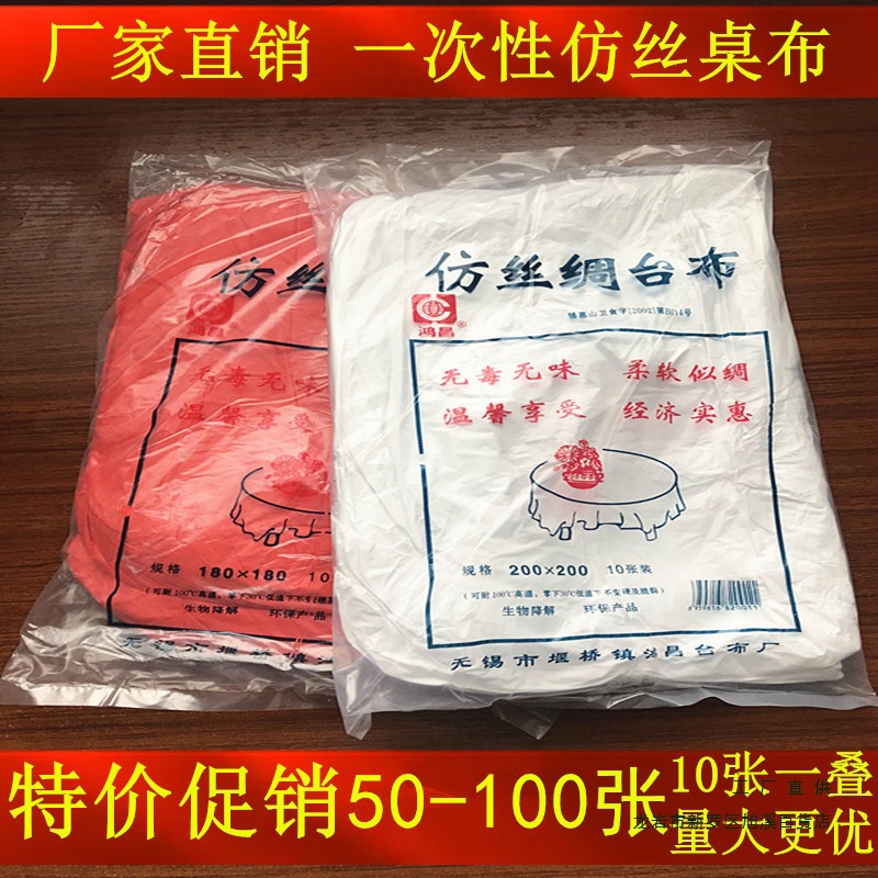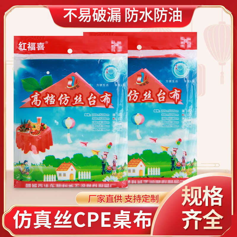 使い捨てテーブルクロスはシルクcpeプラスチックフィルムに似せて赤い白色家庭用結婚披露宴ホテル防水を厚くした