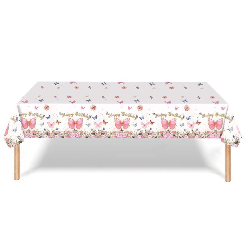 現物アマゾンピンク蝶テーマ食布パーティー製品会場配置用品使い捨てpeテーブルクロス