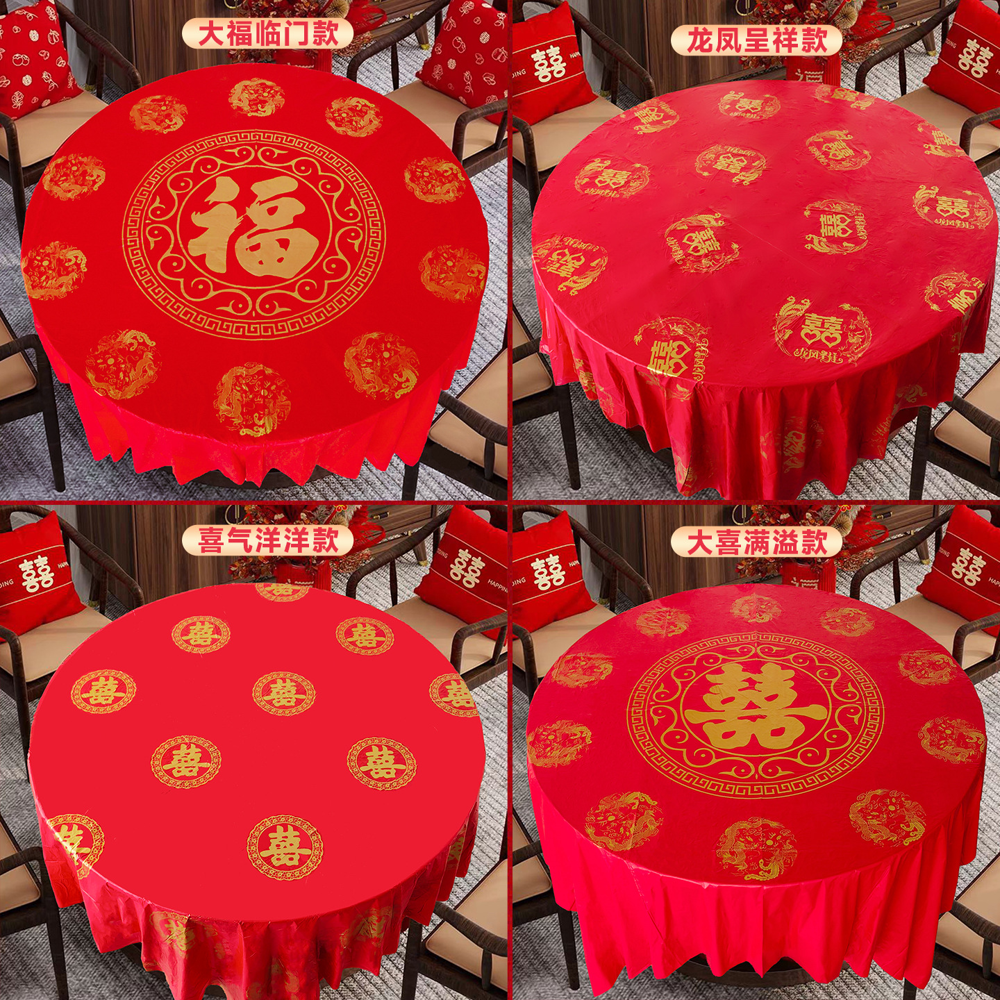 使い捨てテーブルクロス結婚式のお祝い結婚式の宴会赤厚みのある防水宴会結婚式の大きなハッピーワードラウンドテーブル結婚式のテーブルクロス
