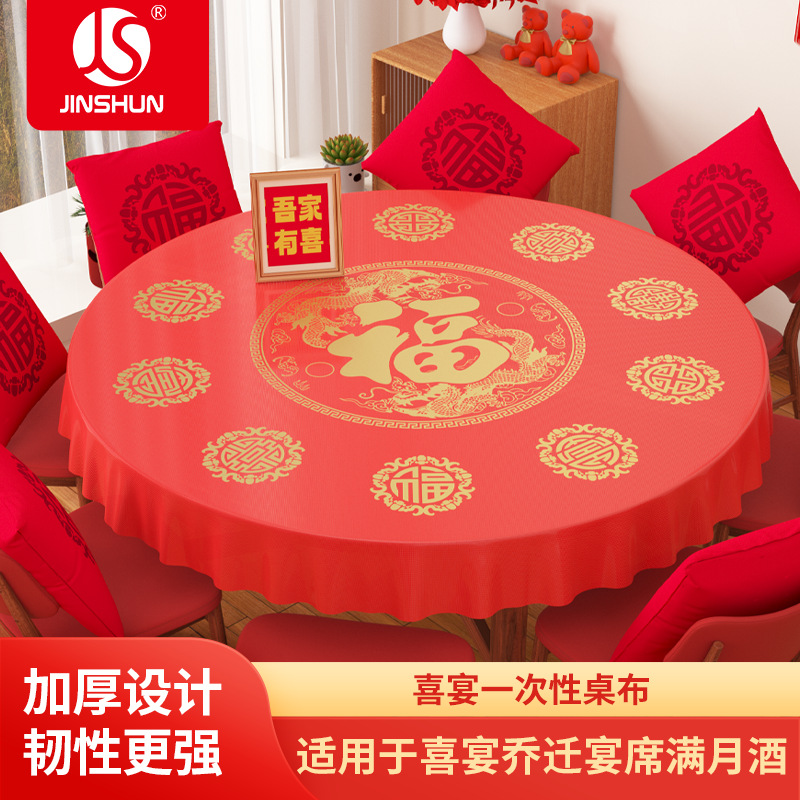 赤いプリントテーブルクロス結婚祝い結婚用龍鳳呈祥テーブルクロス祝宴酒席一度防水10人テーブル用