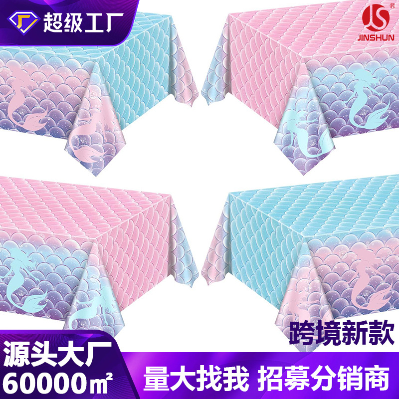 クロスボーダーカスタマイズされたマーメイドチェック柄テーブルクロスゲームパーティーテーマ使い捨て防水耐油長方形テーブルクロス