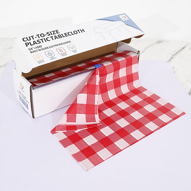 卸売ロール状使い捨てテーブルクロス格子柄カッター付きテーブルクロス防水防油家庭用厚手プラスチックテーブルクロス