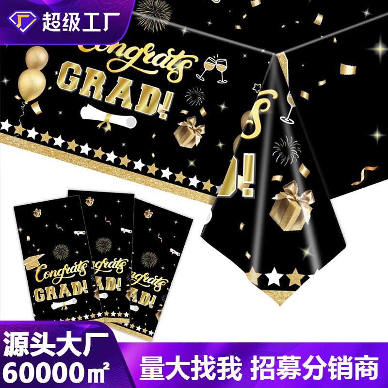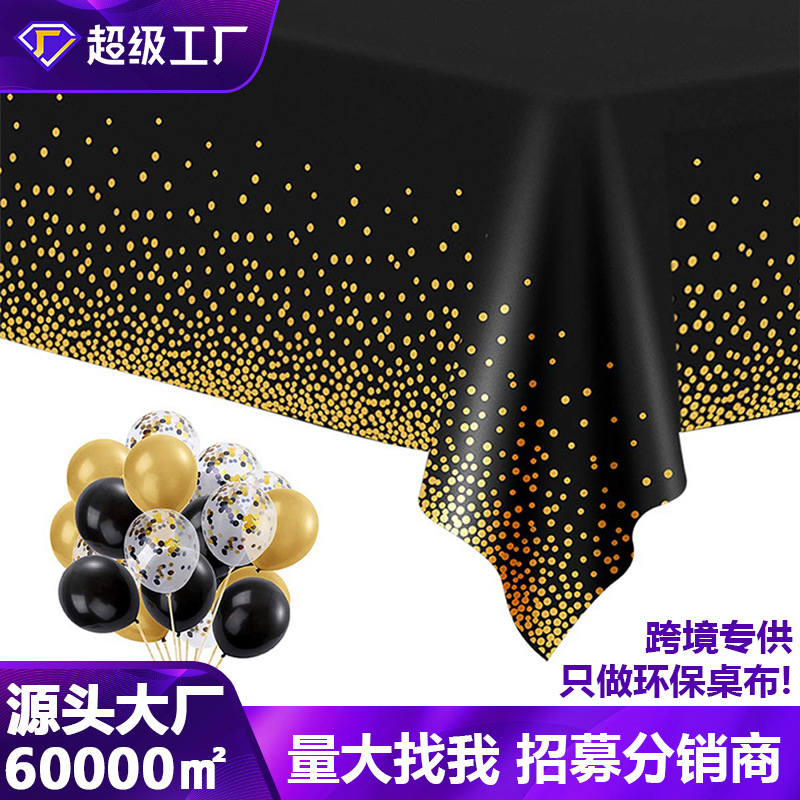 厚みのある使い捨てテーブルクロスブラックゴールド卒業シーズン誕生日パーティー装飾用品商業クロスボーダー防水耐油テーブルクロス