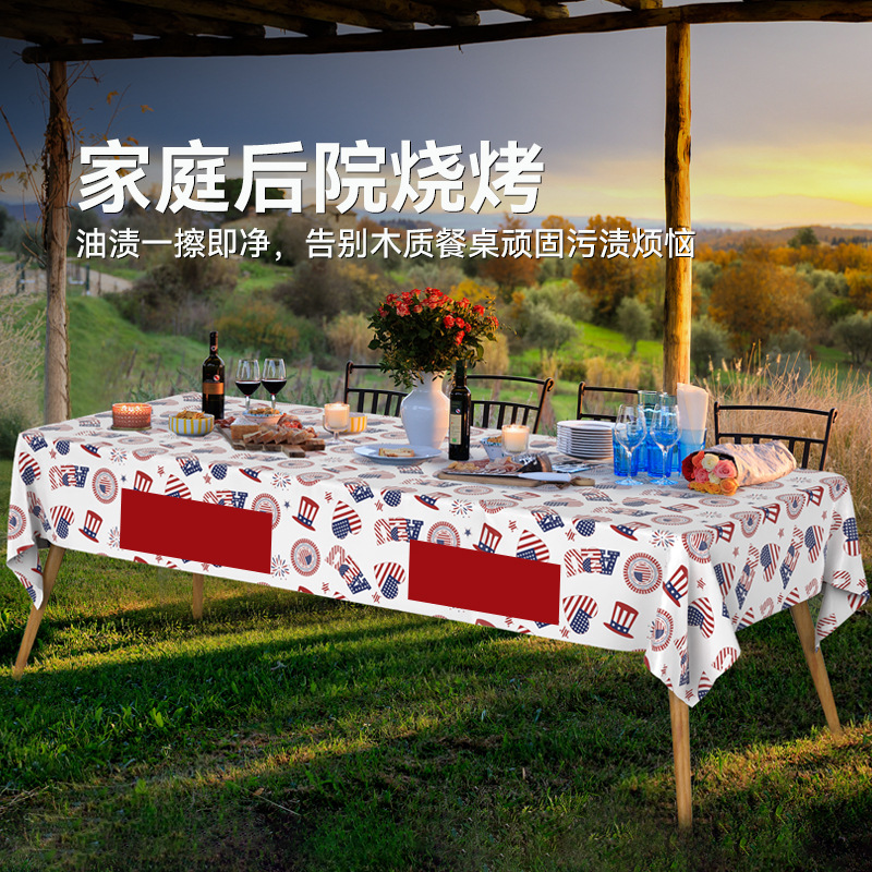 カスタム肥厚拭き取り可能な使い捨てテーブルクロスアメリカ国旗パーティープラスチックテーブルクロス防水耐油PEテーブルクロス