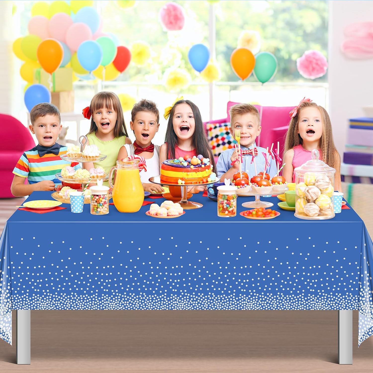 Pスポット使い捨てテーブルクロス青い銀点パーティーテーブルクロス54*108インチ長方形テーブルクロス祝日装飾工