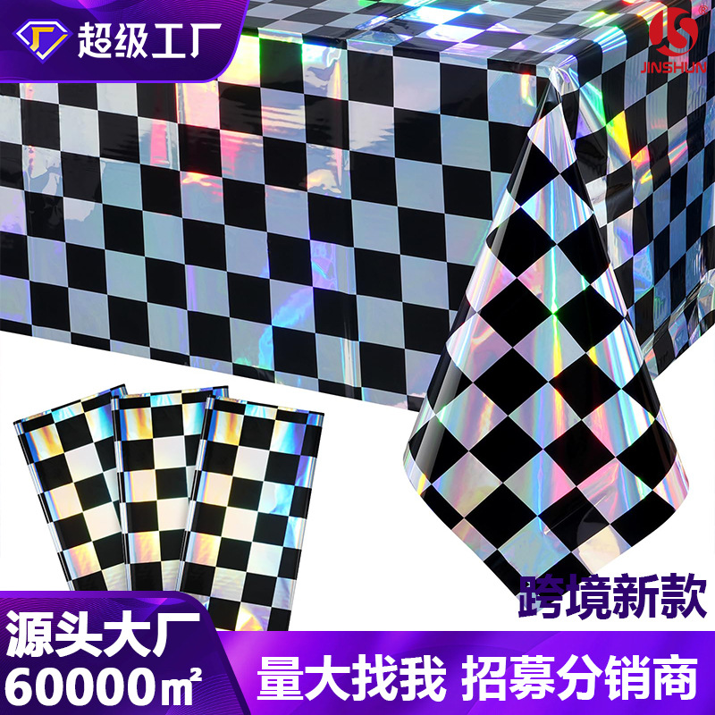 クロスボーダーカスタマイズされたレインボーレーザーチェック柄テーブルクロスキャンプパーティーテーマ使い捨て防水耐油長方形テーブルクロス