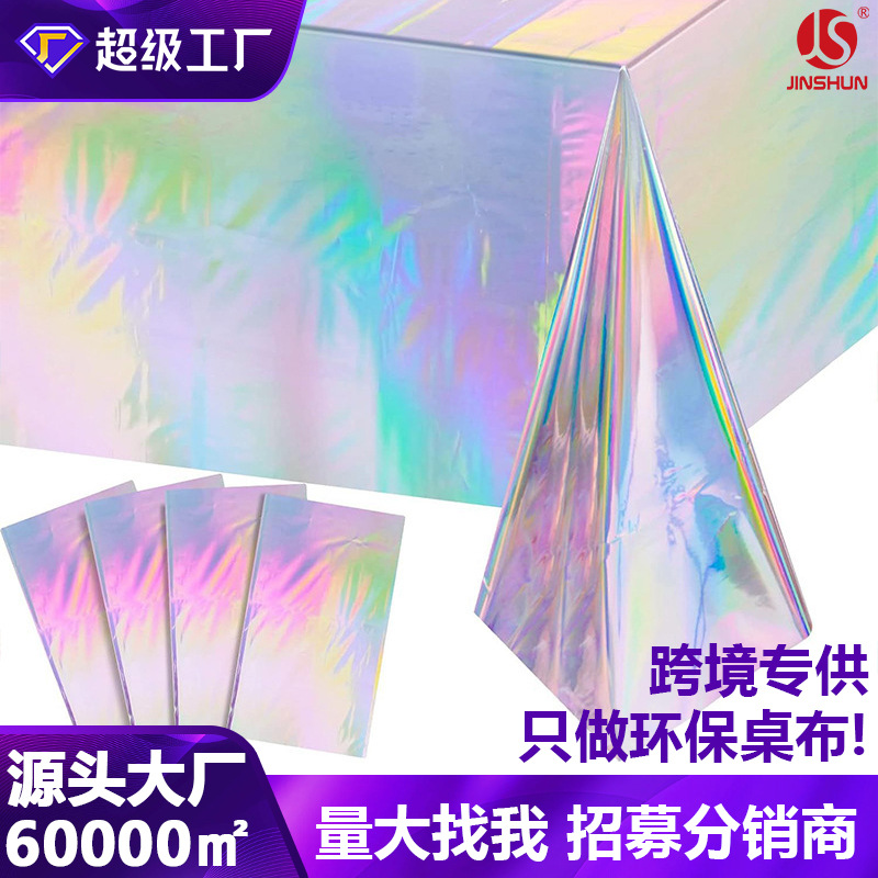 カスタマイズされた使い捨てテーブルクロスクロスボーダーレーザーレインボーテーマパーティーテーブルクロスアルミフィルム誕生日ウェディングパーティーの装飾