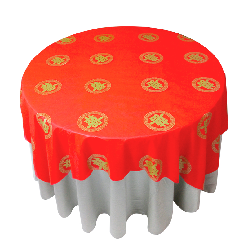 使い捨てテーブルクロス結婚用結婚式披露宴赤い結婚式の酒席はお祝いの字の円卓のお祝いのテーブルクロスを厚くします。