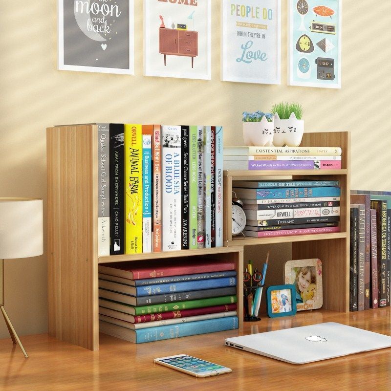 本棚の簡単な机の上の学生用の子供の本のデスクトップの物置棚の寮の小さい本棚の組み合わせの伸縮できる収納棚