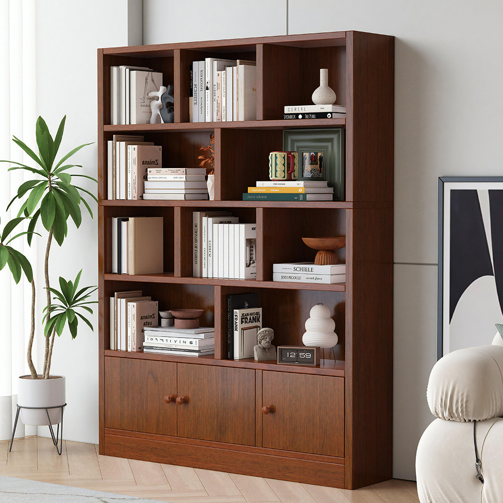 木製の本棚の棚が床に落ちた本棚のリビングルームの事務室の書類棚は壁の展示棚に寄りかかってドアの資料棚を持っています。