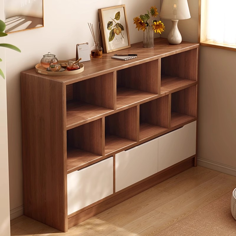 ウッドカラーブックキャビネットグリッドコンビネーションキャビネットディスプレイキャビネットホームリビングルーム正方形収納床置き収納キャビネット本棚キャビネット