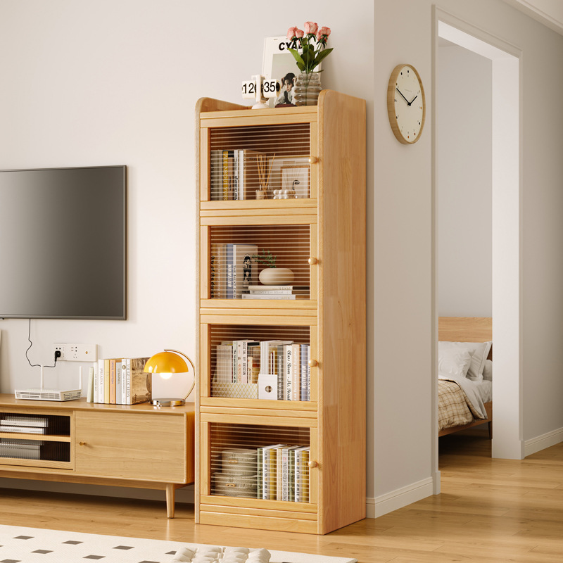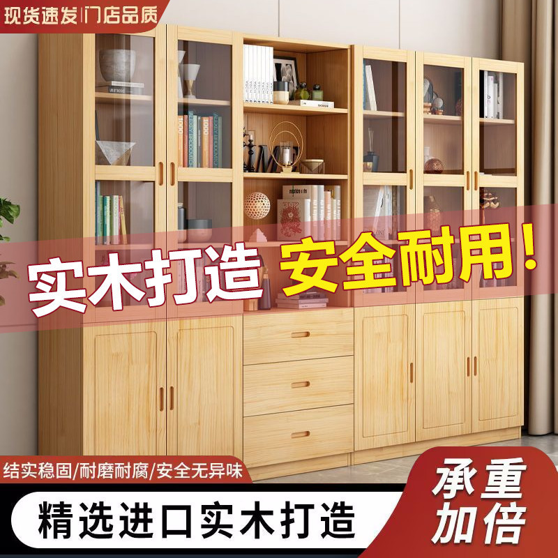 無垢材本棚と本棚の組み合わせモダンでシンプルなガラス防塵本棚リビングルーム書斎収納キャビネットフロアキャビネット工場
