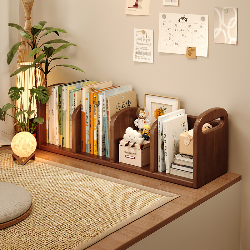 シンプルな木のデスクトップの本棚は子供の本を整理します。