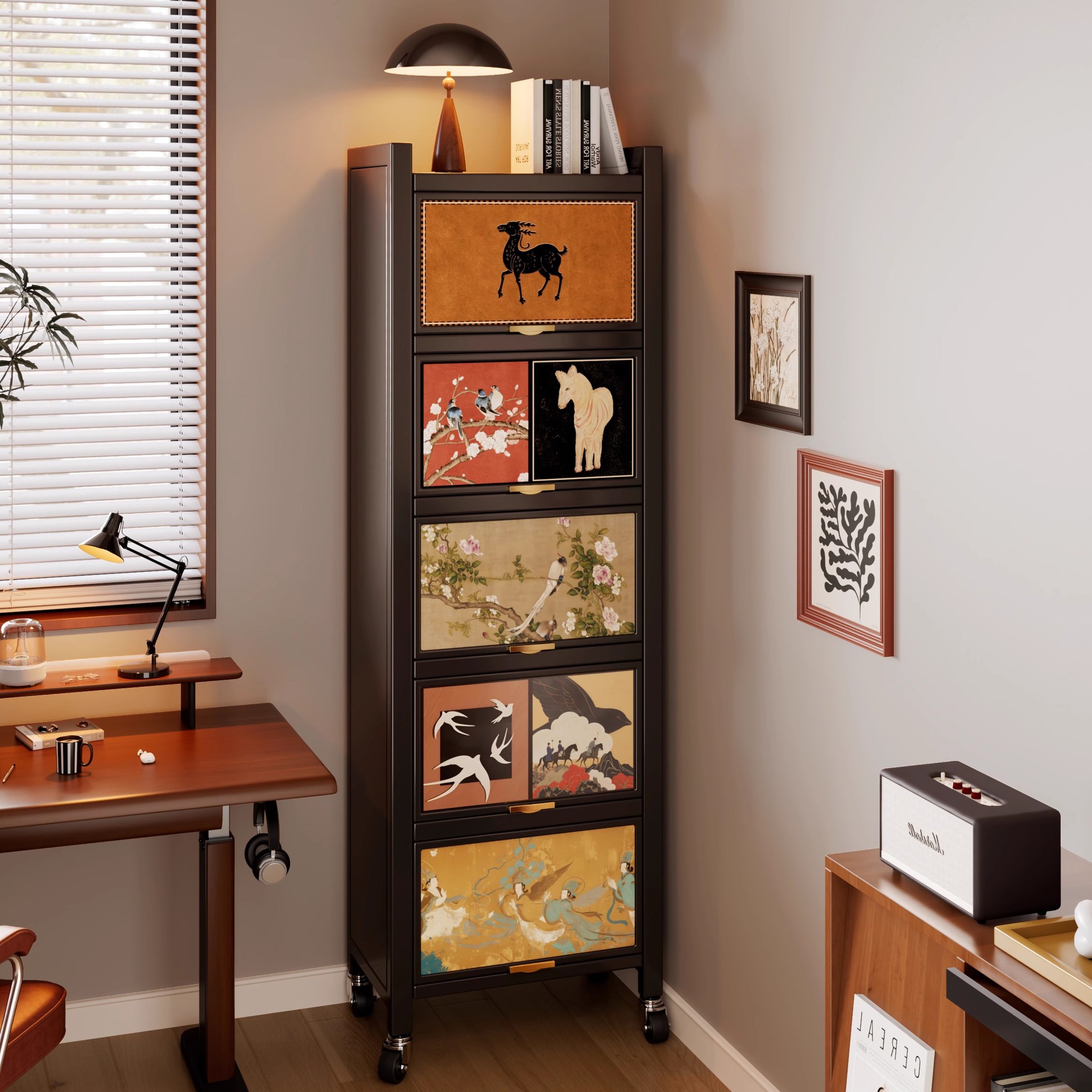 家庭用鋼製本棚台所棚防塵子供本棚ドア付き棚収納棚床置きロッカー