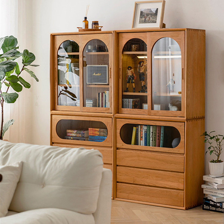ガラスドア付き無垢材本棚、本棚、モダンでシンプルな収納ラック、床置き型組み合わせ収納ディスプレイキャビネット、軽くて豪華な本棚