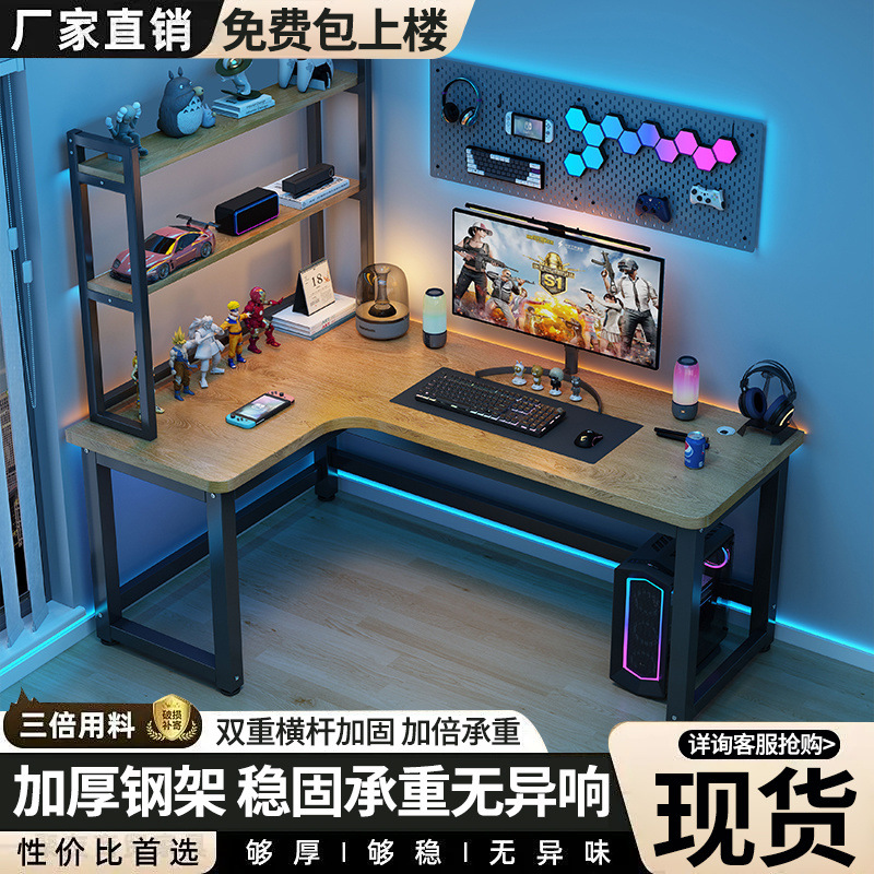コーナーコンピュータデスクデスクトップ多機能ダブルテーブルコーナーテーブルゲーム学習ライト高級オフィスデスクeスポーツ工場