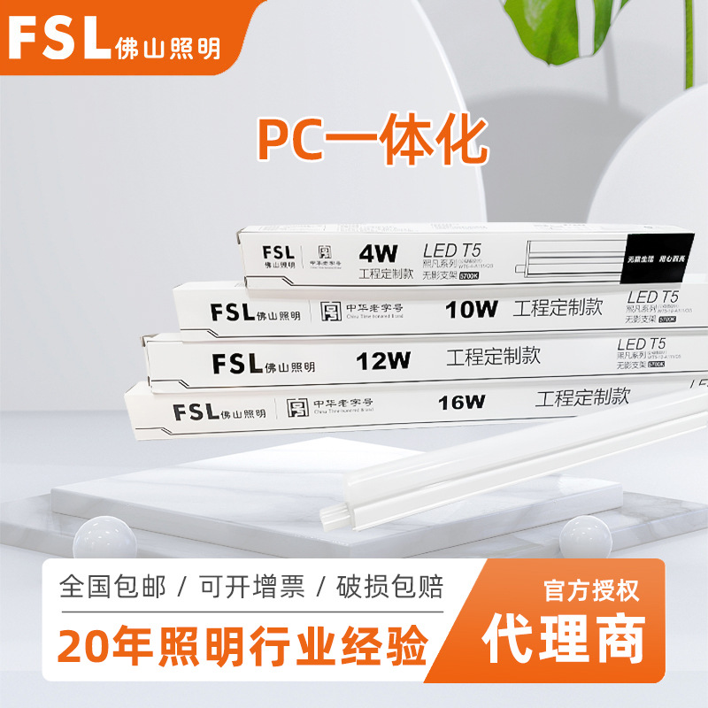 FSL仏山照明t 5led一体化ランプ影なしブラケット直列プラスチック启凡4w 8w 10w 16w 20