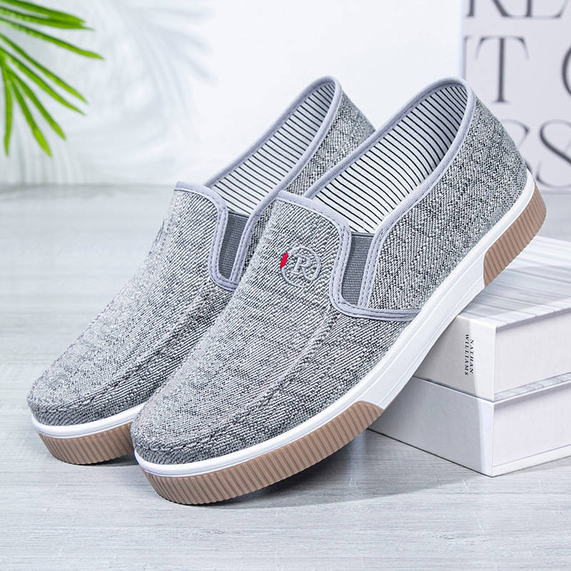 在庫一掃キャンバス男性靴夏の新型通気性カジュアルフラット靴ソフト底一足漕ぎ布靴黒仕事ファッション靴