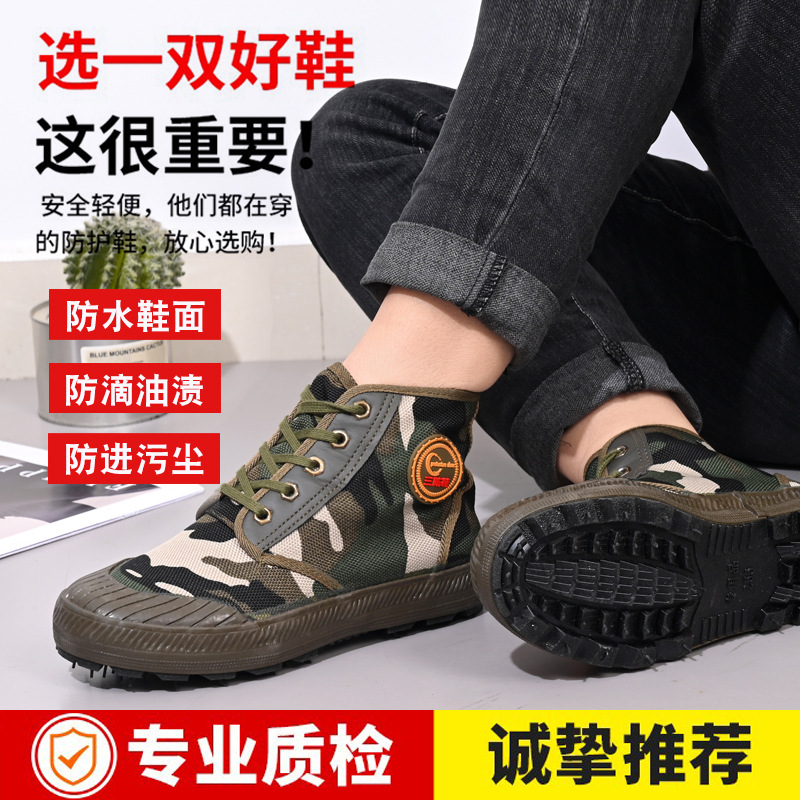 3537 ハイトップ解放靴、男性用、屋外労働保護キャンバスシューズ、迷彩、農地訓練、建設現場作業、耐摩耗性、滑り止め