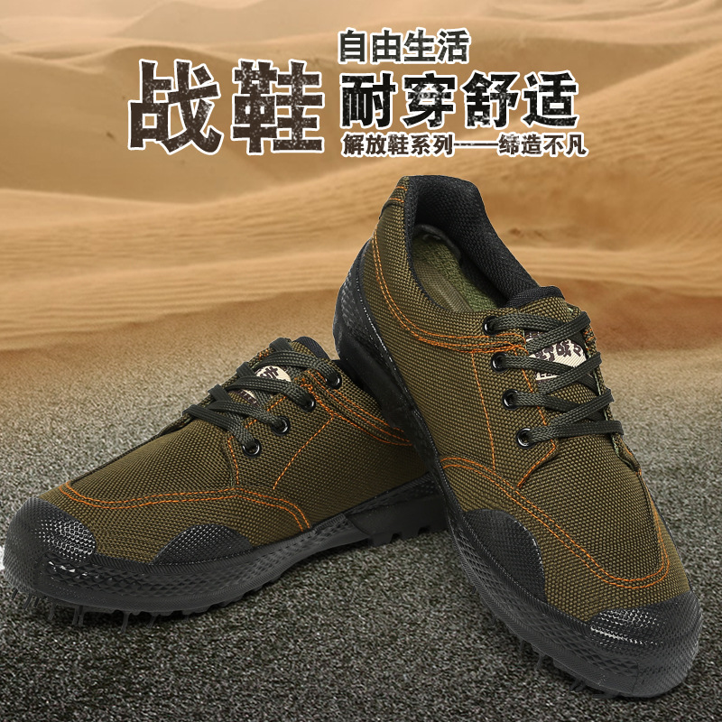 解放靴、作業靴、労働保護靴、ハイトップラバーソール、滑り止め、耐摩耗性、迷彩軍事訓練靴、トレーニングシューズ、登山靴