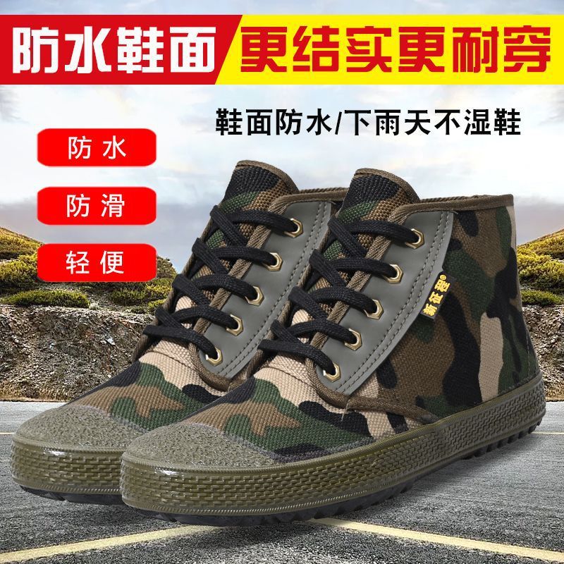 解放靴男民工工事現場耐磨耗労働靴滑り止めキャンバス靴軍事訓練迷彩靴ゴム靴