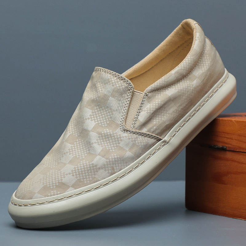 D オールプリントキャンバスシューズ秋の新作紳士靴ロートップレトロプリントキャンバスカジュアルフラットスリッポン多用途靴