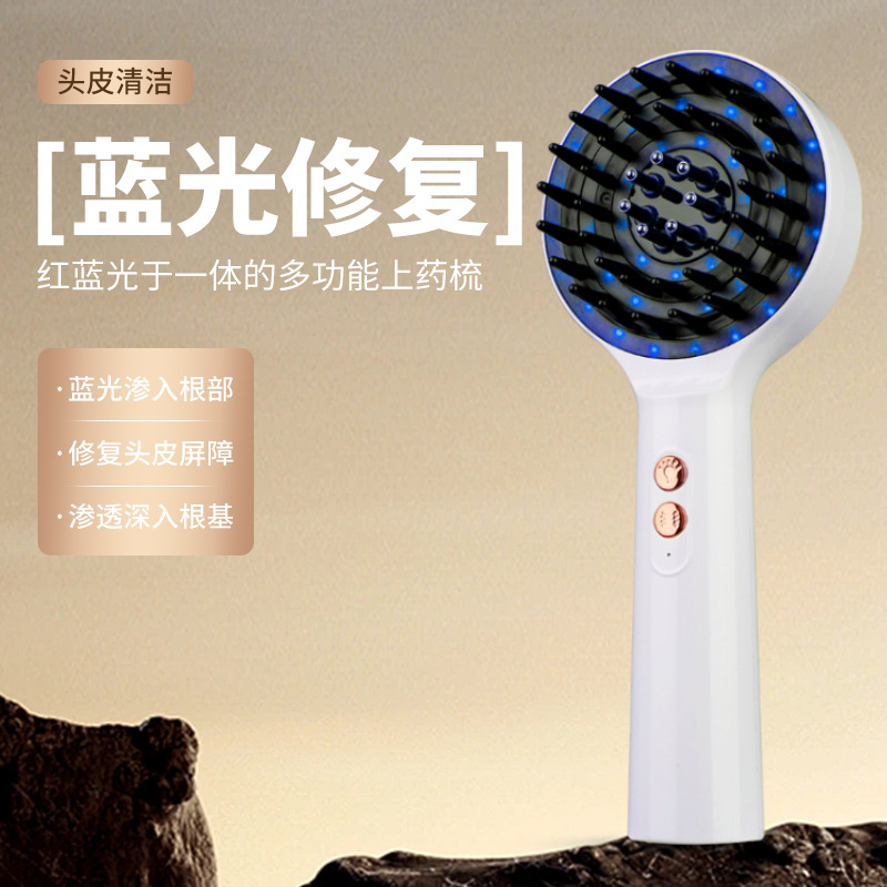 2024新型頭皮上薬器赤青光マイクロ電流頭部マッサージ看護櫛導液櫛ミノ上薬器