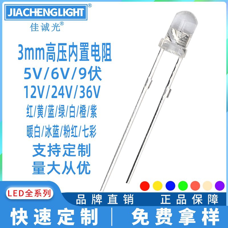 3 ミリメートルラウンドヘッド LED ランプビーズ 5v 赤、黄、青、緑、温白色光、UV 紫色のライト 12v 高輝度カラフルなストレートプラグプラス抵抗 24v