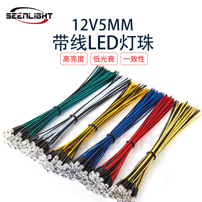 メーカー直販12v 5mm円頭灯珠帯線20cm led灯珠赤黄青緑白発光ダイオード