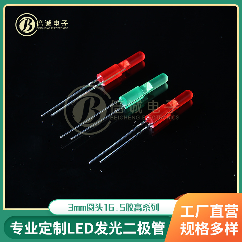 二極ランプ丸頭直挿し電球3mm円頭電球16.5mm高コロイドled電球深く直挿し電球