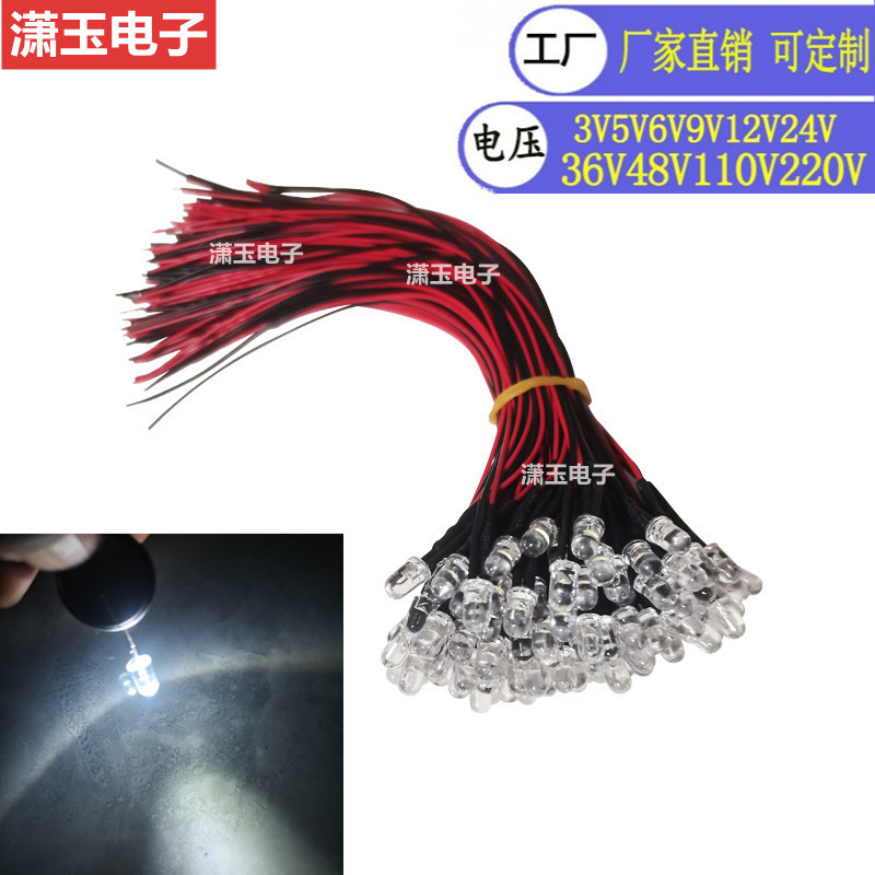3mm/5mm発光ダイオードケーブル付き5V/12V車ボートモデルおもちゃ車インジケータライト小さな電球LEDライト
