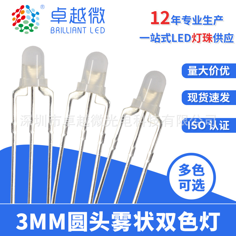 3mm二色赤緑2脚無極性ダブルチップf3赤緑電源指示ランプ変色ランプ充電スタンド