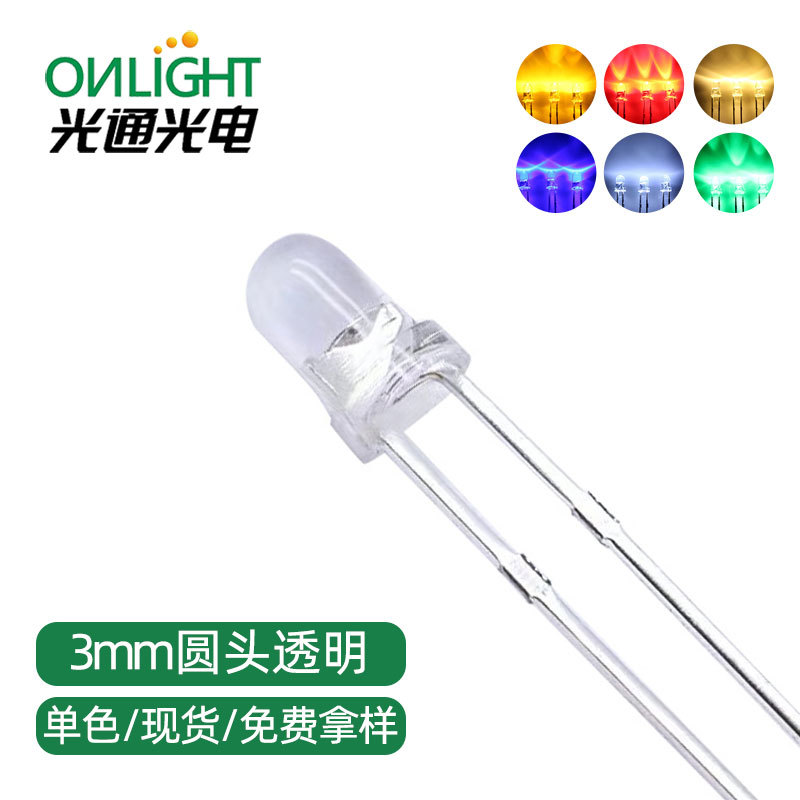 F3/3mmの丸い頭には、透明な白髪赤青黄青緑オレンジ色の白色光直挿しled発光ダイオードがある