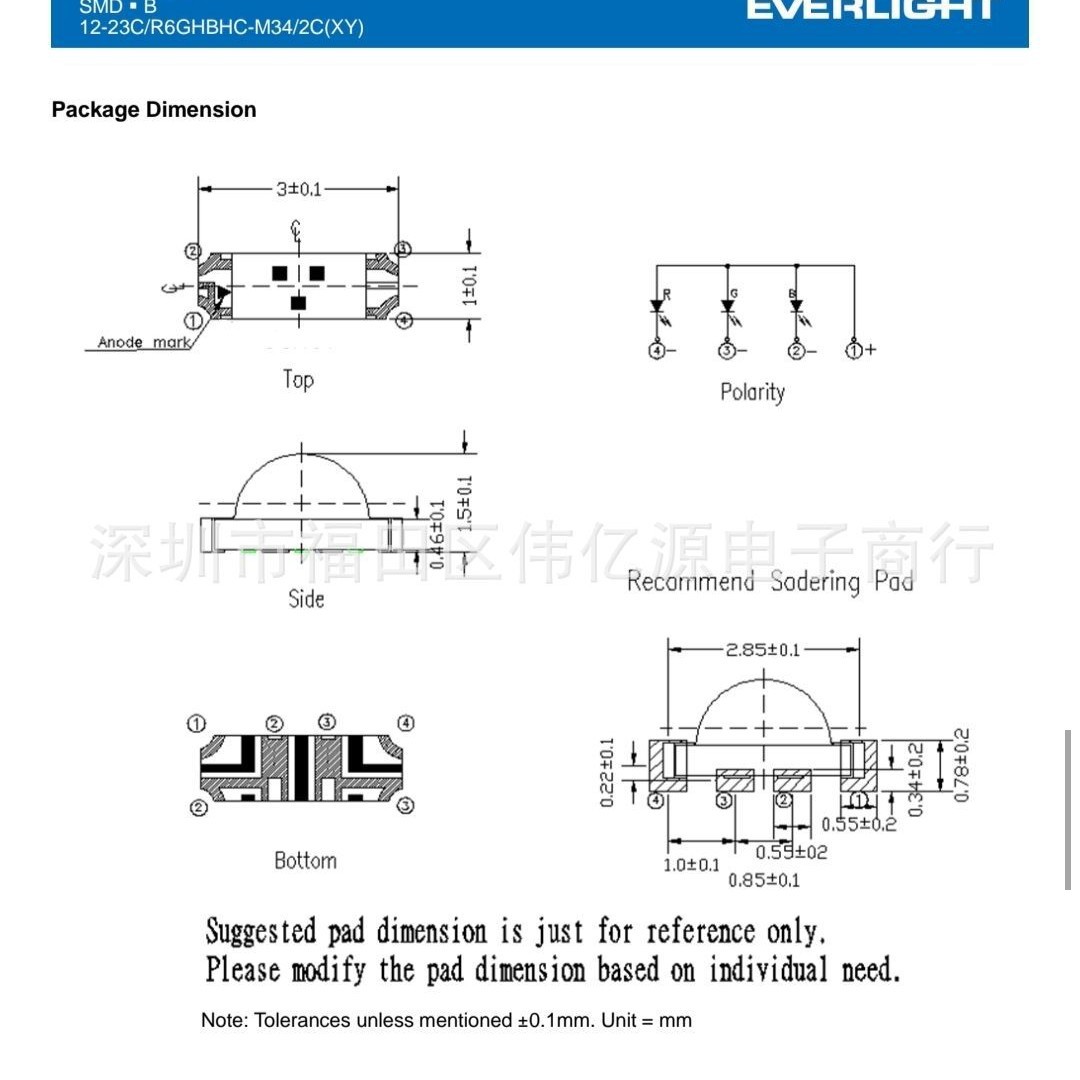 12-23c/R6GHBHC-M34/2C 1206側面RGB共陽億光現物側にLED三色を貼る