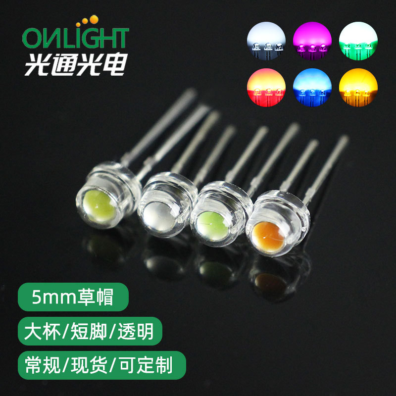 超高亮5mm縁の短い足の麦わら帽子の大きい杯の白赤黄青翠緑色のLED発光ダイオードはまっすぐに電球を挿します。
