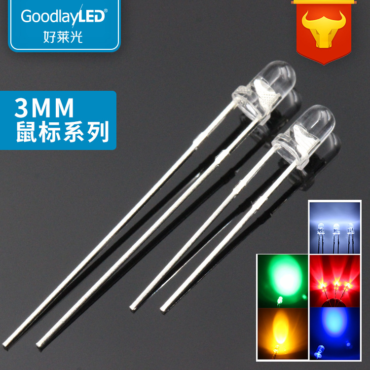 F3/3mm超高亮マウスランプled発光ダイオードランプ白髪紅白髪青白髪翠長足短足