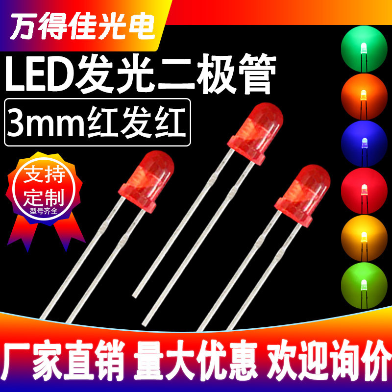メーカー直供3mm赤発赤LED電球F3円頭赤光ハイライト発光ダイオード赤光表示灯ビーズ