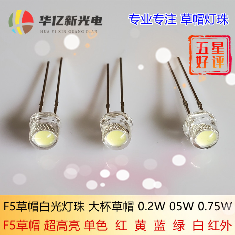 F5麦わら帽子白色光f5麦わら帽子0.2w大杯ホワイトライトビーズf5大チップ麦わら帽子白色光0.5w