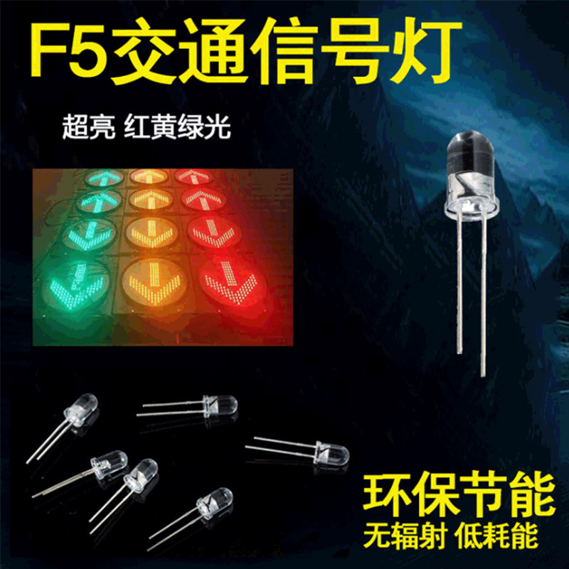 F5電球赤発光ダイオード5mm緑光警告黄色光超亮直挿led電球交通信号灯珠