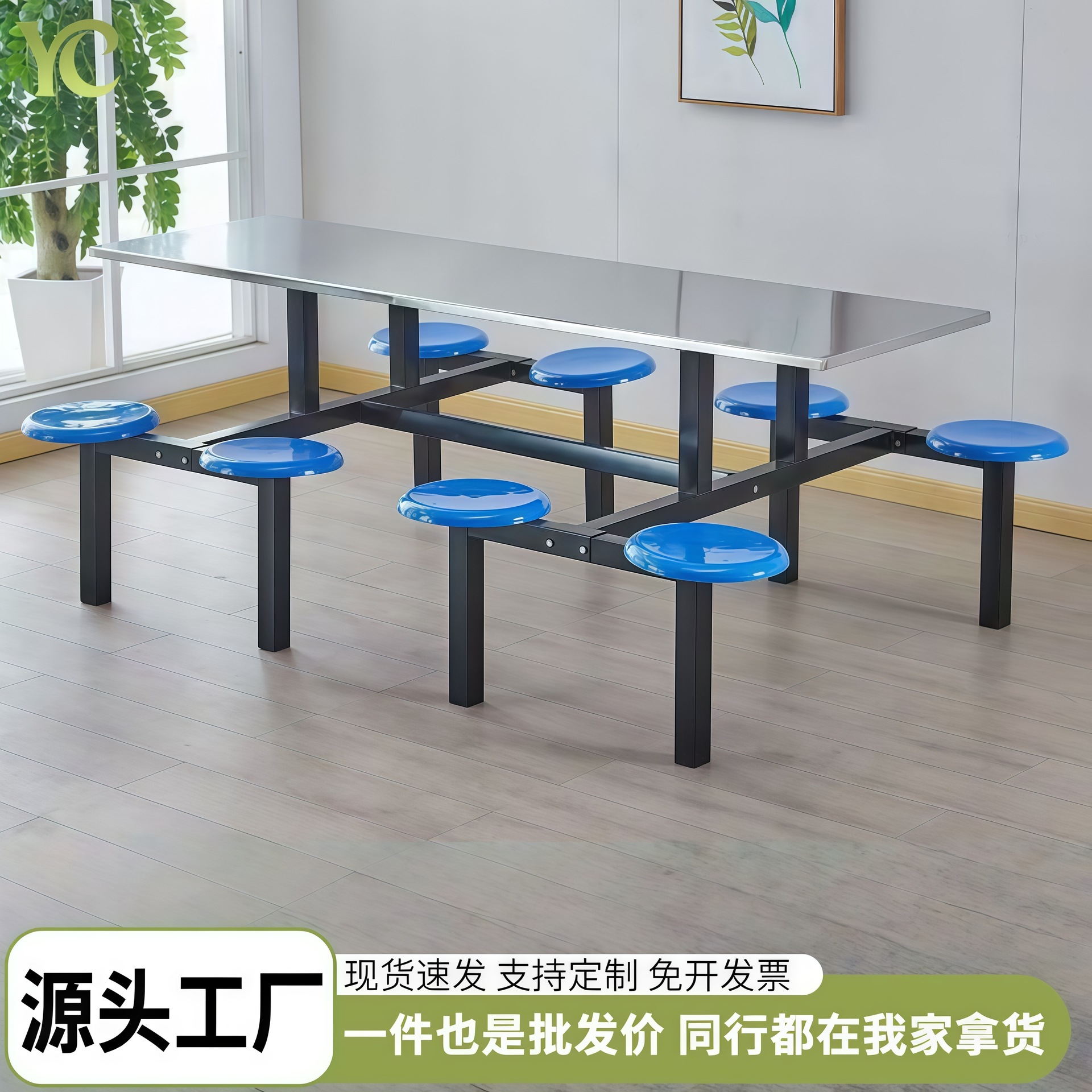 ステンレス食卓学校従業員食堂連体食卓4人6人8人従業員レストラン組み合わせテーブル椅子