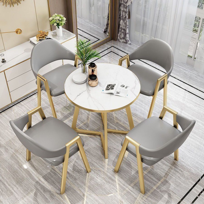 軽奢ミルクティーショップの食事場所、休憩エリア、岩板商談テーブルと椅子の組み合わせ、カフェ、営業所、受付用の小さな丸テーブル