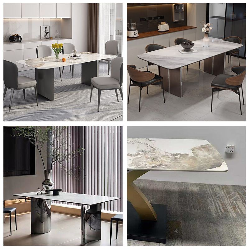 工場直販スレートダイニングテーブル業務用テーブルと椅子の組み合わせレストラン長方形ラウンド交渉ステンレススレートテーブル