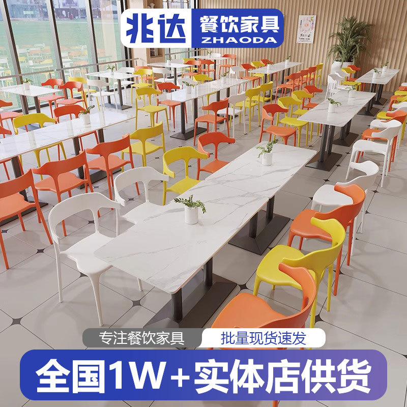 食堂レストランスレートダイニングテーブル学校学生ダイニングテーブルと椅子ライト高級モダンな1テーブルと4椅子ファーストフードレストランダイニングテーブル