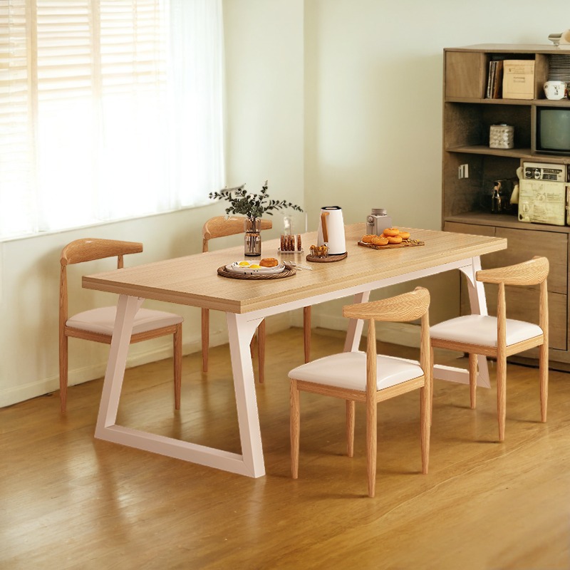 実木脚食卓家庭用小戸型客間食事テーブルクリーム風長方形商用食卓テーブルと椅子の組み合わせ