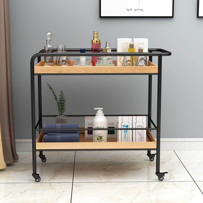 シンプルな収納カート現代鉄芸移動ソファサイドのリビングルームのキッチン棚食堂車レトロな実木